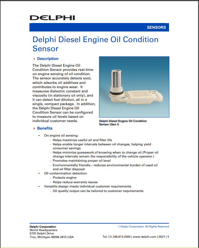 Delphi Oil Condition Sensor Product Profile Sheet
